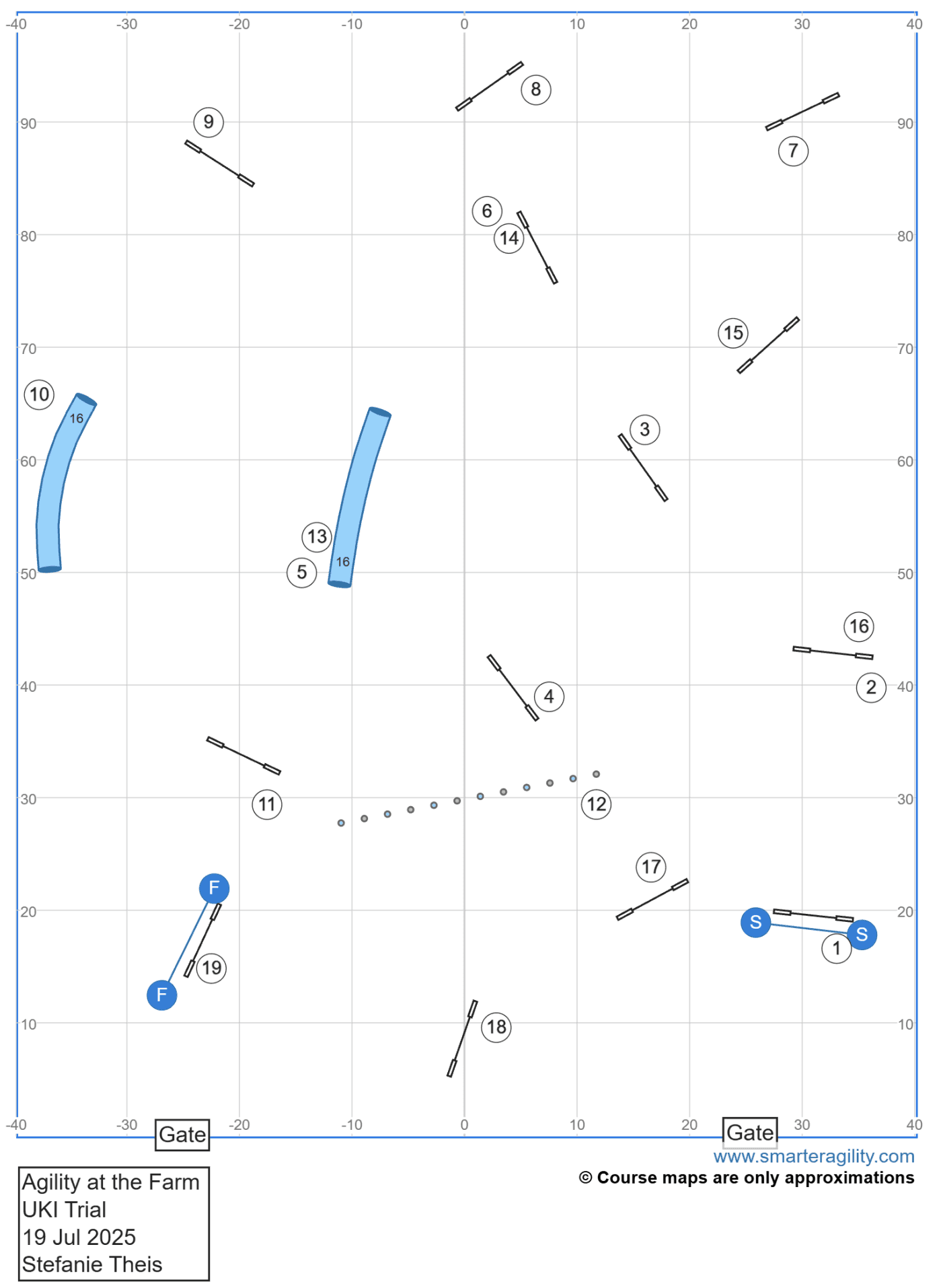 Stefanie Theis designed a challenging approach to the weaves in a recent UKI Masters Series Jumpers course. Here's the course and video of how Snap! and I handled it.
