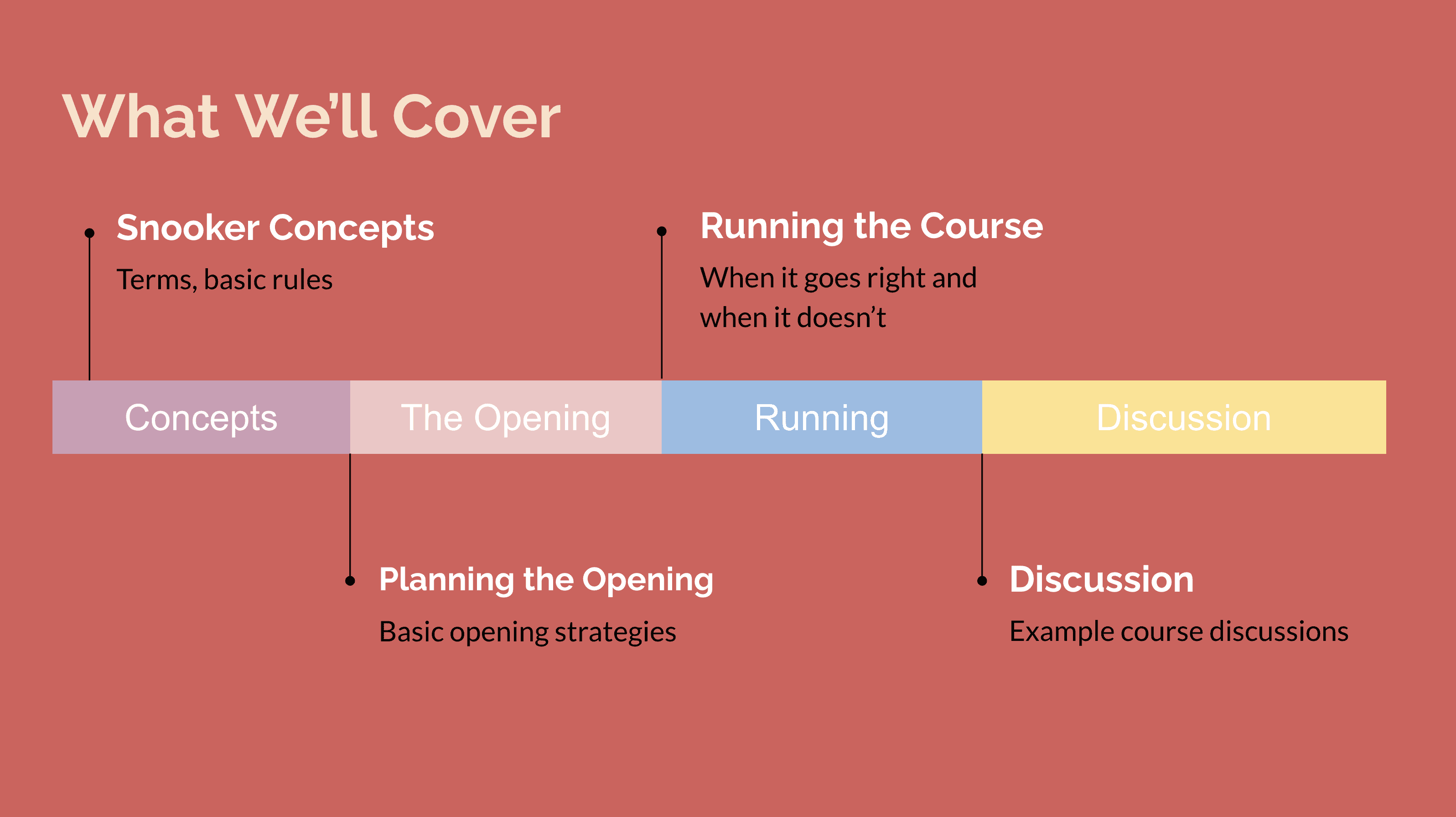 Here’s the video including audience questions and applying the techniques discussed to multiple snooker courses: