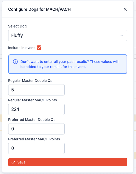 You can also import results from other sources or enter your dogs’ current totals directly:
