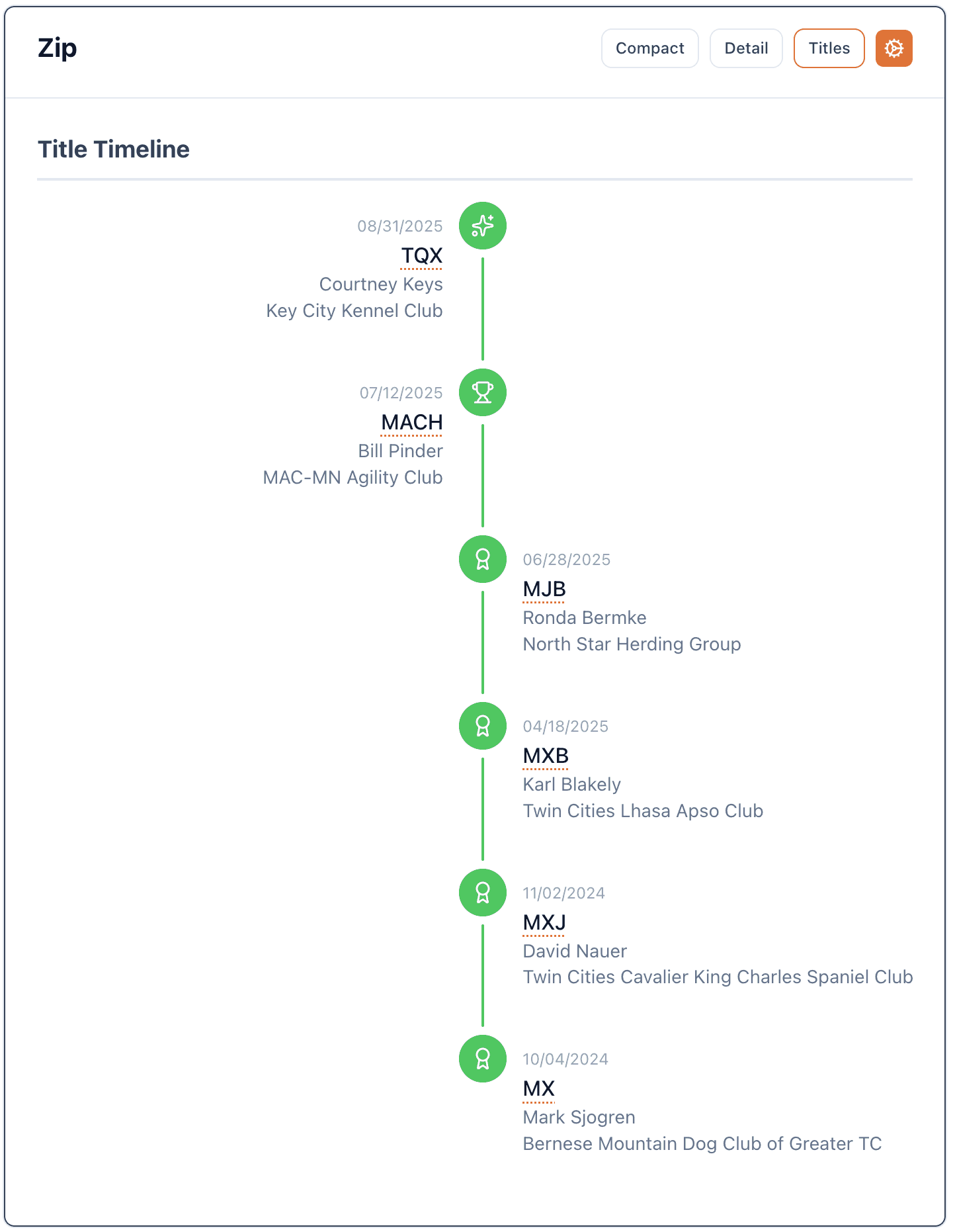 You’ll see when your dogs are eligible for each event or have earned titles: