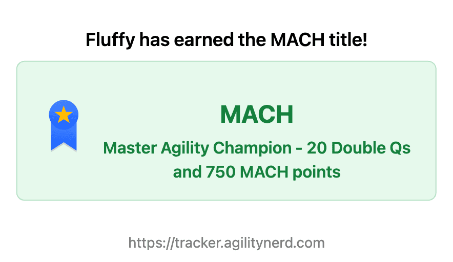 You can enter or import any AKC dog agility results for any level. The following titles and event qualifications are all automatically tracked: